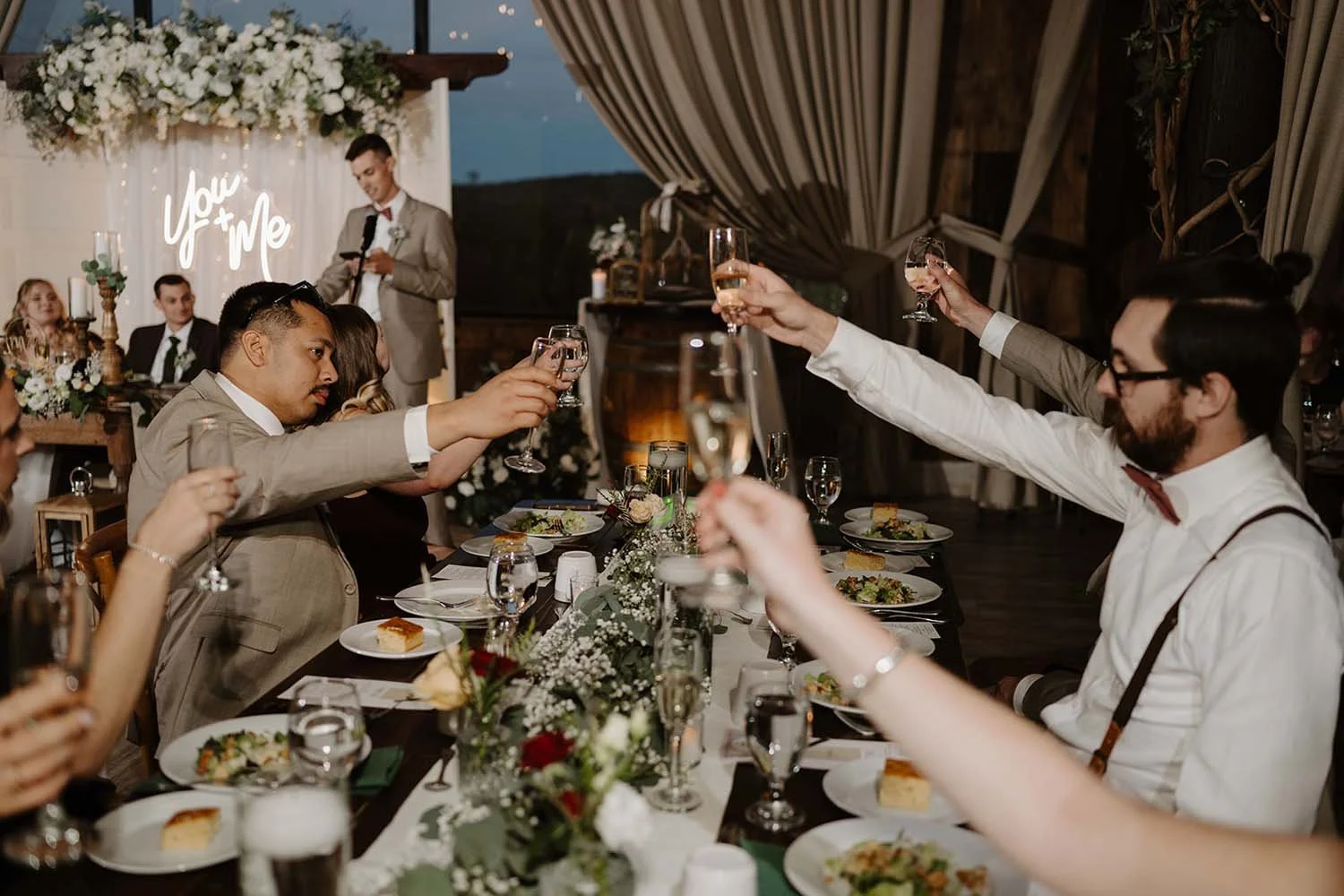 The Tip: Work with your florist to create "grounded" or modular arrangements. If the clouds roll in over our outdoor pergola, these pieces can be whisked inside in minutes to frame our indoor fireplace or the Grand Barn’s entrance. Because our interior palette is so versatile(blending rustic wood with modern clean lines) outdoor florals transition perfectly to the indoor space without clashing with the decor.