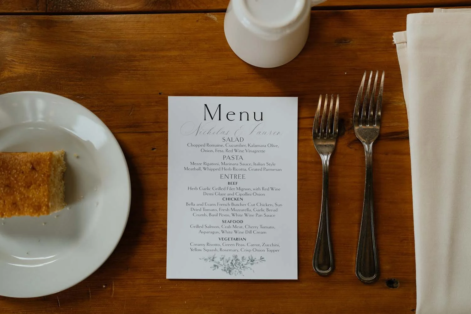 From herb-garlic grilled filet mignon to creamy vegetable risotto, every dish is crafted with seasonal ingredients and culinary precision. When you combine our rustic farmhouse tables with a sophisticated, restaurant-quality dining experience, you create a seated dinner that feels both intimate and grand.